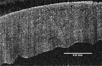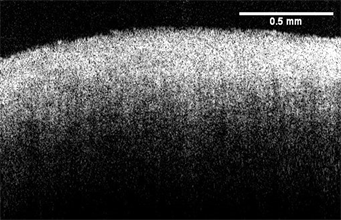 OCT images of cornea and sclera were made using a Lumedica OQ labscope (Lumedica, Inc., Durham, NC) operating in the scanning mode. Sample thicknesses for cornea and sclera were measured from OCT images using the Lumedica device as well as the laboratory OCT [16] [17]. OCT images of the cornea and sclera are shown in Figure 1.