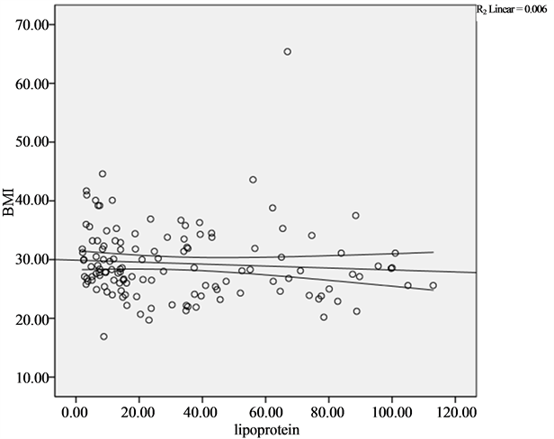 BMI was associated with age, the same was not observed for lipoprotein (a) and u-CRP. Similarly, in the study by Khan et al. (2010) [20] , average lipoprotein (a) was greater in adolescents, which may be due to the fact that body mass index was also higher in this population.