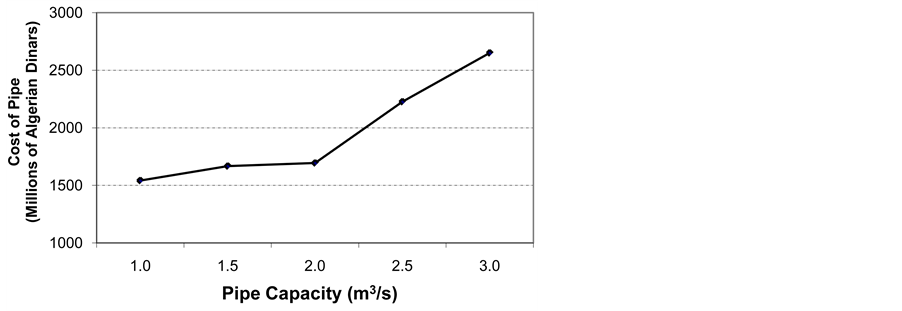 Figure 4. Cost of pipe for different values of pipe capacity.
