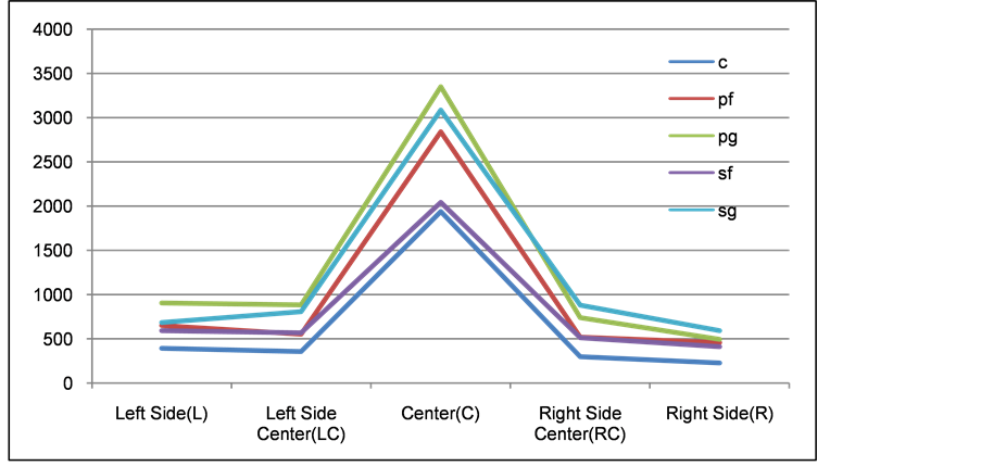 According to the basketry, we can divide the shooting locations into five different kinds: Left Side, Left Side Center, Center, Right Side and Right Side Center. Figure 1 shows the distribution shooting data of players of five positions at five kinds of locations.