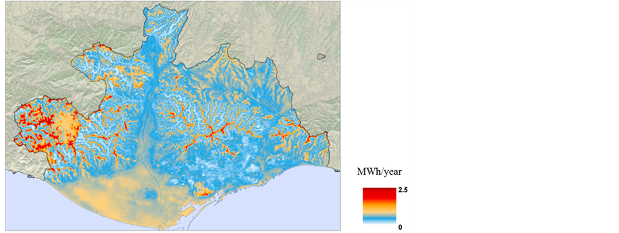 Figure 7. Mean annual energy production Atlas at 20 m high (City of Barcelona).