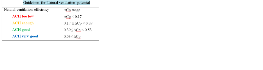 The example is located at the Reunion Island where trade winds are moderate on the North side of the island. Even in urban areas the average velocity is close to 2 m/s at 10 m above the ground and the buildings may be naturally ventilated. Moreau and Gandemer [12] gave some recommendations to assess the potential of natural ventilation in tropical warm climates. Guidelines are based on the pressure coefficient differential ΔCp between upwind and downwind sides of a building.