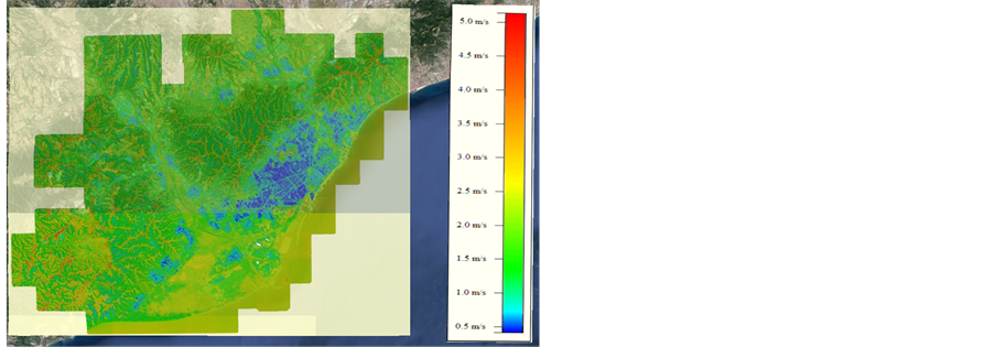 Built environment is characterized by high turbulence intensity and low mean wind speed. Then a wrong siting of small wind turbines could lead to turbine failure. In the example of Barcelona city, the objective of computations was to detect better locations to install small wind turbines. Mean annual wind Speed, potential production and turbulence intensity have been computed at 10 m, 20 m, 30 m, 40 m and 50 m height with a horizontal resolution of 10 m (Figure 7).