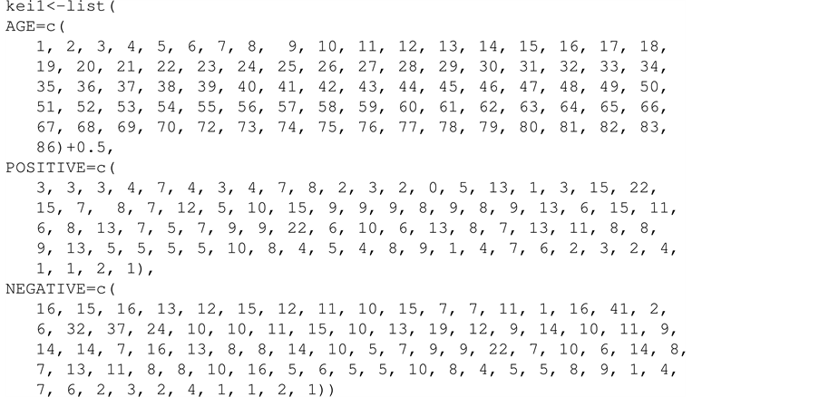 The dataset Keil (see Appendix), is a serological data of Hepatitis A from Bulgaria. It contains information about the age of the subject (in age group of one year), the number of seropositive (number of infected by hepatitis A), and sample size at each are group.