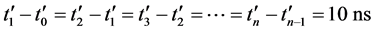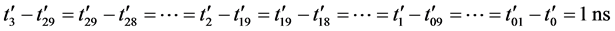 In 1 ns time, the photon pass through 30 cm; in 2 ns time, the photon pass 60 cm; and so on. So the x coordinate values of the three curves are very easy to calculate, and the calculation of y coordinate value can refer to formula (2)-(4). The whole calculation process is not described in detail, here we only list the calculation results: the data of the first curve is in the Table 2, the data of the second curve is in the Table 3, the data of the third curve is in the Table 4.
