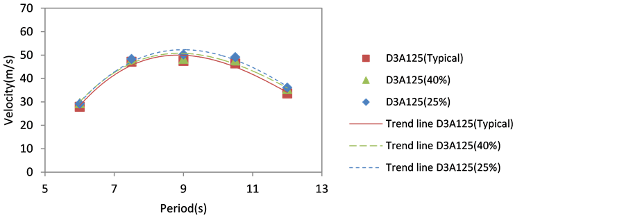 Figure 3. The air velocity (average of 1/3 maximum) in the cabinet for various period of wave.