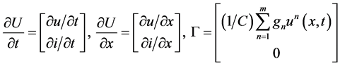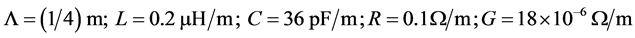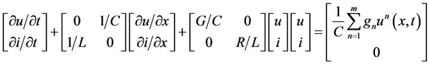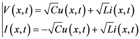are the unknown voltage and current, while L, C, R and G are inductance, capacitance, resistance and conductance per unit length;