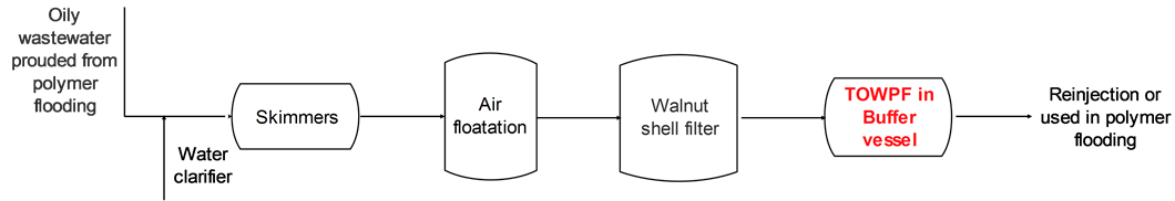 TOWPF was taken from an offshore oilfield in china. In this offshore oilfield, oily wastewater treatment process is shown in Figure 1.