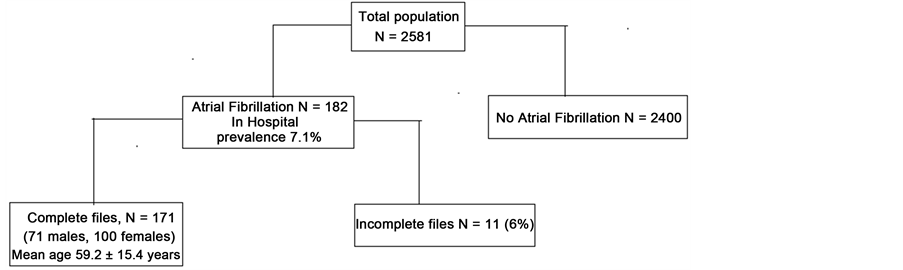 Outcome measures: The main outcome was the presence of Atrial Fibrillation (AF) in the Hospital setting. Secondary outcome measures were the most probable cause of AF after a comprehensive clinical and echocardiographic examination.