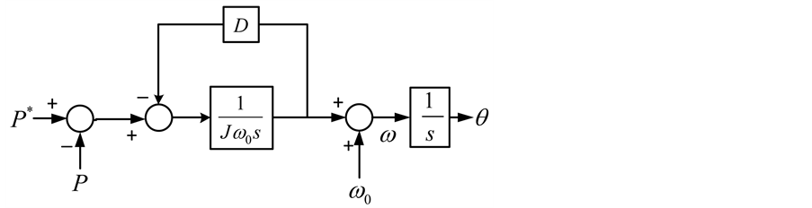 It is shown in Figure 2 that P* and P are rated active power and actual value. J is the imaginary moment of inertia, which can provide VSG with inertia in dynamic process. D is damping coefficient, which is used as feedback gain. w0, w and θ are rated angular frequency, actual angular frequency and angle.