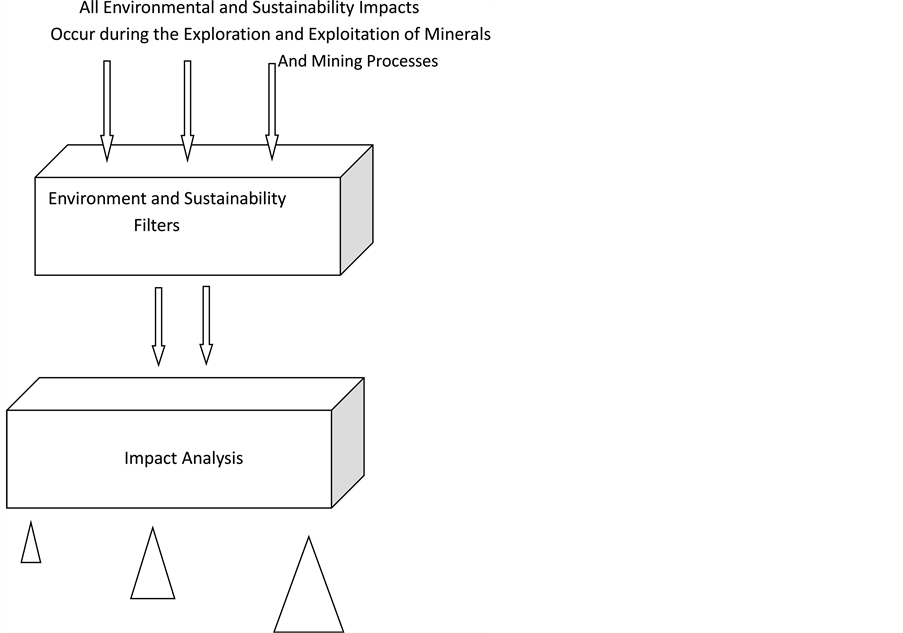 During the last two centuries, due to the fast urbanization and industrialization along with advancement of mining and mineral Science, Engineering and Technology, there have been considerable developments in MM sector with the resultant wastage of copious amount of resources, environmental pollution and disproportional environmental stress affecting quality of life. Subsequently, it was realized that there were many adverse impacts on environment and society. These unsustainable mineral and mining developments have sustained the environmental and sustainability growth [12] . Sustainability of design and development, quality of life, safety on earth and continuous process improvement of our environment is of utmost important. Sustainable mining and mineral development means a kind of development that meets the needs of the present without compromising the ability and efficiency of future generations to meet their mining and mineral needs. Hence, hectic mining and mineral developmental activities during the last two centuries have caused considerable environmental and social impacts. These impacts have been measured, monitored and mitigated by international environmental impact assessment process (Figure 3).