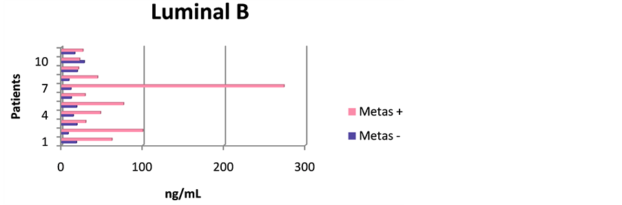 Table 1. All 42 patients characterized by age, metastatic site, subtype of BC and NSE value. BM : brain metastases group; NBM : no brain metastasis group; HER 2+= HER 2 positive; TN: triple negative.