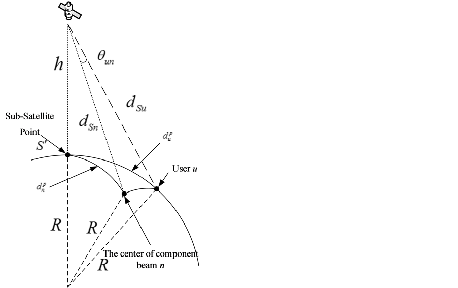 Figure 2 shows the space relationship among satellite, user u and component beam center n. h is the height of satellite orbit. R is radius of the earth.