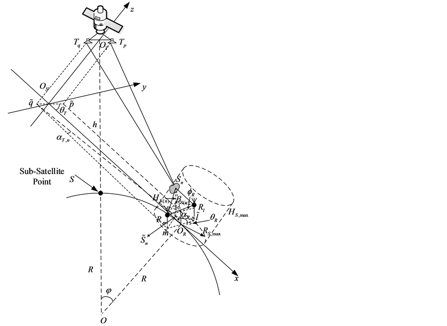 In the model shown in Figure 3 and Figure 4, Rm and Rl are the mth and the lth antenna in ground receiver respectively, Tp and Tq are the pth antenna and the qth antenna in satellite respectively. x − y plane is parallel to horizontal surface, and is perpendicular to OOR. OR is the midpoint of two antennas Rm and Rl ground projection line. OS is the point of intersection of x axis and y axis and also the midpoint of x − y plane projection line of two antennas Tp and Tq. OT is the center of transmitting antenna array. HS,max is the maximum height of scatterers distribution. RS,max is the maximum range of scatterer distribution (the maximum radius).
