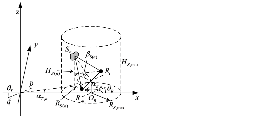 Since the large number of hypothetical scatterers in the model, let Sn be the nth scatterer. Let RS,max and HS,max represent the radius and height of cylinder in the model, namely, the maximum distance and height of scatterers distribution. RS(n) is the distance between OR and Sn projection in x-y plane,