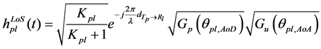 where HloS(t) is impulse response of direct-path, HNLoS(t) is impulse response of multipath. HloS(t) and HNLoS(t) are both NT × NR matrix. K is Rician Index, which describes ratio of direct-path power and multipath power (unit is dB). The value of K depends on angel of elevation from ground receiver to satellite, carrier frequency and environment around receiver. In this paper, since the interval between ground antennas is much small than shadow fading in different states, we
