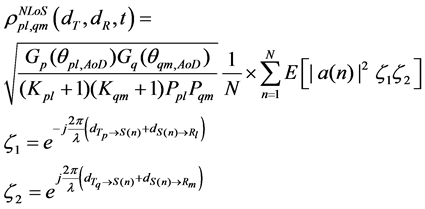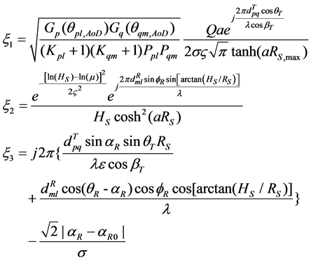Since the large number of scatterers around ground receiver antennas (a larger number N), RS, HS and αR can replace the discrete variables RS(n), HS(n) and αR,n as an approximation. (11) can change into integral form