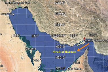 Figure 1 shows the area of interest in this study. It begins with Strait of Hormoz in the east and ends with Khowr-e-Musa in the west side and contains largest (Shahid Rajaei Port) and second largest (Imam Khomeini Port) ports of Iran.