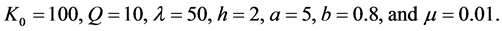 According to the result in section 5, we give an example that may illustrate how the numerical search procedure works. Suppose that there is a product which is a linear function in the inventory system and adopts the following parameters: