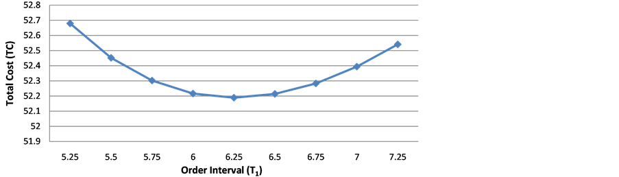 We now put all the values in Equations (15), (16), (2) and (13) and then we get the results as optimum order interval