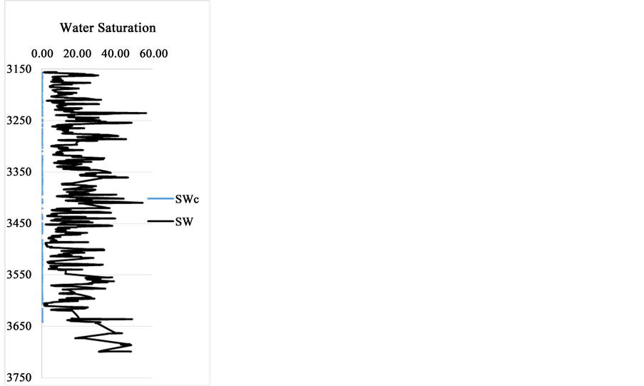 Figure 2. The corrected water saturation (SWc) and water saturation (SW) charts of the study well.