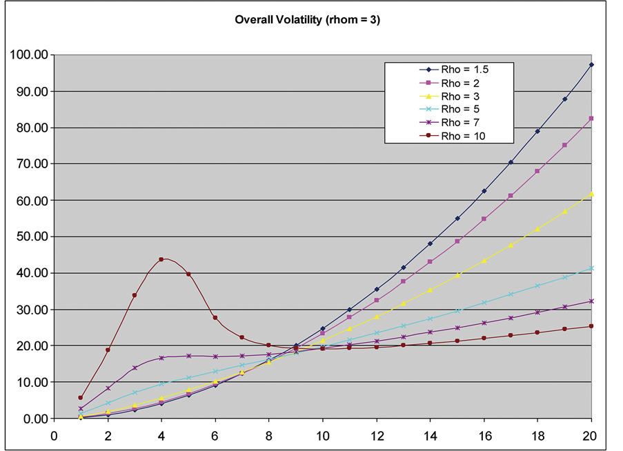 That table implies that for the coefficient α2 is strictly positive as well as for ρ large. For intermediate ρ and by continuity we can say that when ρ is close to but larger we still have that α2 is positive. However as ρ gets closer to , decreases and could potentially become negative as it becomes negative that means that would decrease with ρ and could also become negative. For , the function admits a minimum at . This leaves the possibility to obtain two roots, if the function admits a negative value at .