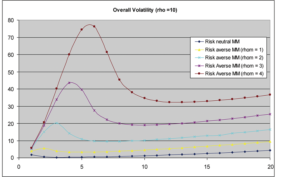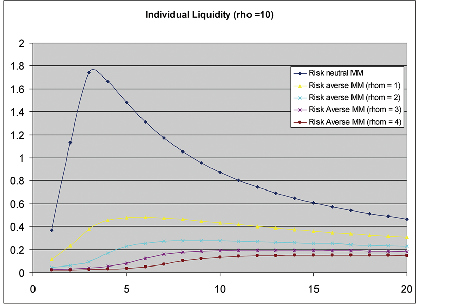 The following simulations (Figure 3 and Figure 4) show the levels of aggregate liquidity for risk neutral as well as risk averse market makers.