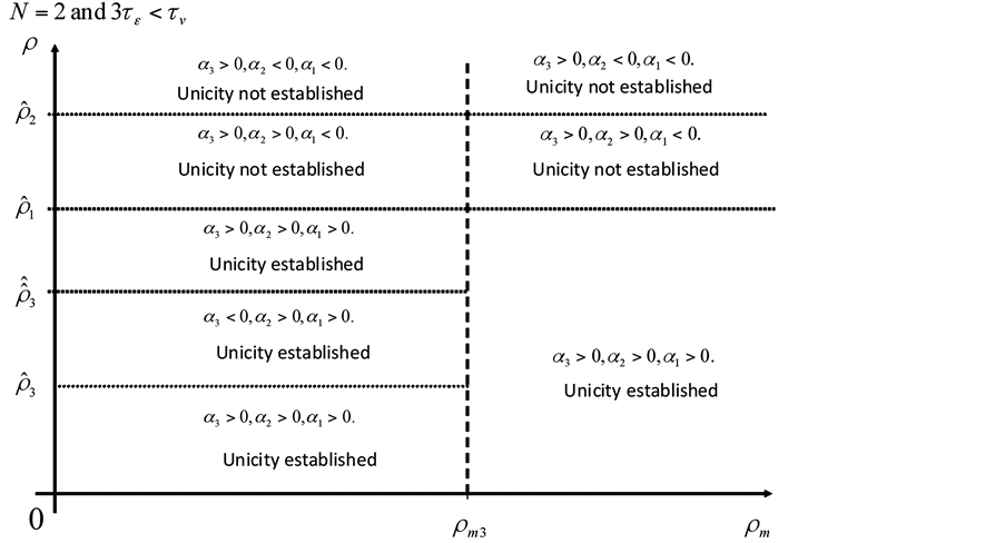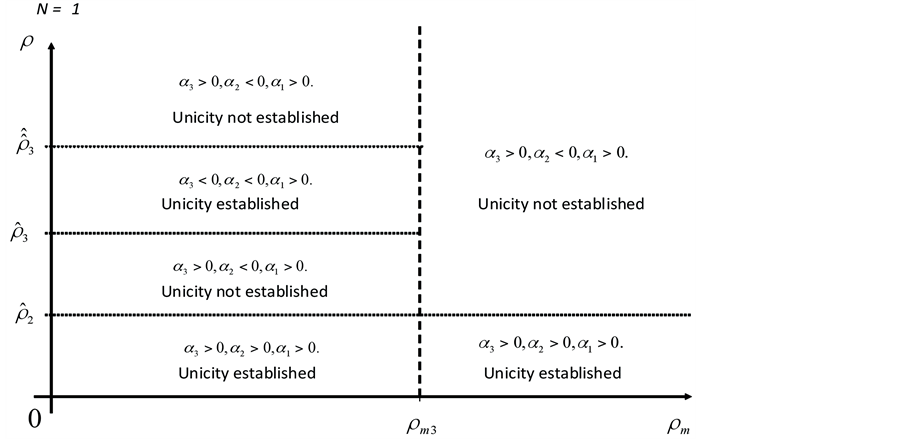 Figure 13. The figures show the cases for which the unicity can be established formally and cases for which it can not be as a function of ρm and ρ. The figures correspond to the case where N = 1, N = 2 and N = 3.