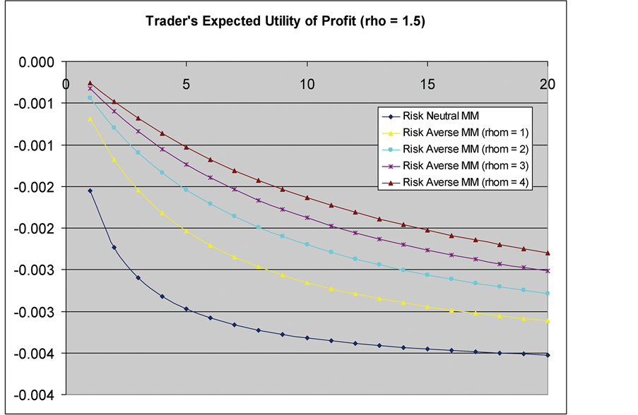 positive impact of competition and therefore leading to increasing expected utility with . When the number of market makers is high (very competitive market), risk aversion is beneficial to them as it reduces competition.