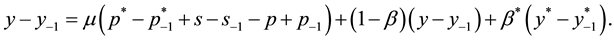 As the above equation is based on the variables at log level, therefore to get a growth rate we take the first difference of the variables: