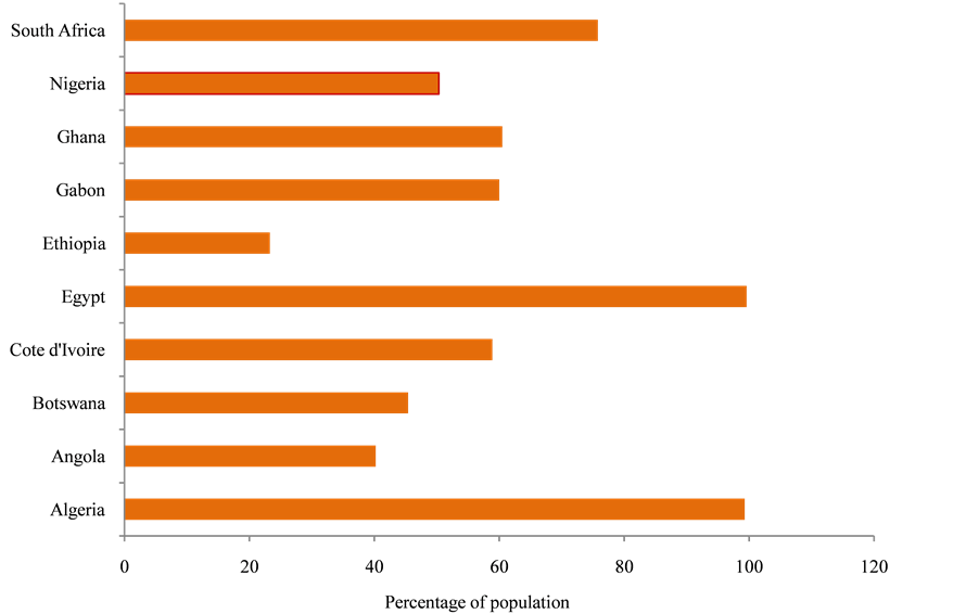 Figure 3. Access to electricity in some African countries in the period 2009-2013 [37] .