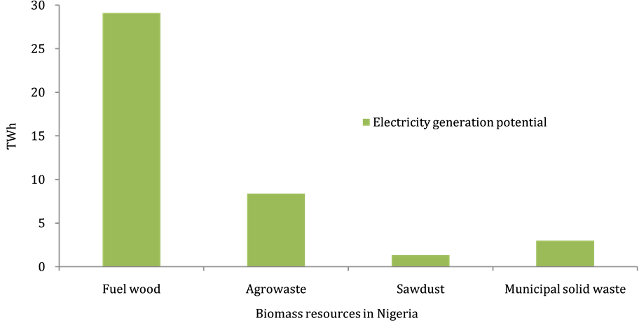 Biomass resources such as municipal solid waste and animal waste, agricultural crops and residues, as well as forestry resources, are common in Nigeria. Given that they are available extensively, especially wood waste, there is a large potential for their use in producing biofuel [14] .