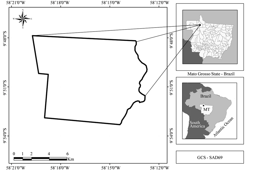 The study was conducted at São Nicolau farm, located in the municipality of Cotriguaçu, northwest of Mato Grosso state, Brazil (Figure 1). The farm belongs to the Brazilian branch of the Office National des Forêts (ONF Brazil), and has an area of 100,000 km2, of which 70,000 km2 are covered with secondary open rain forest, reforestation of 20,000 km2 with tree species intercropped with pasture and 10,000 km2 ha with riparian areas fragmented.