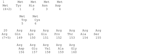 Amino acids shown in Table 1. Elements are given in the view that is used in this task. Each of the elements consists of three lines: upper, middle and lower. The named amino acids Met and Arg are shown in the middle line.
