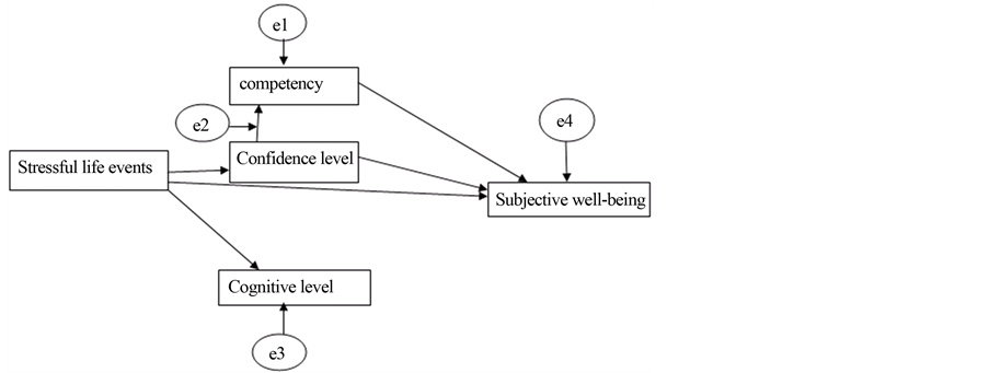the stressful life events affect college students’ subjective well-being of intermediary role, to build the path diagram as shown in Figure 1.