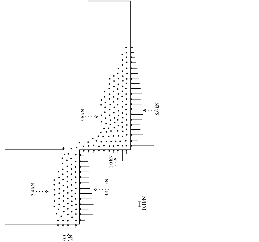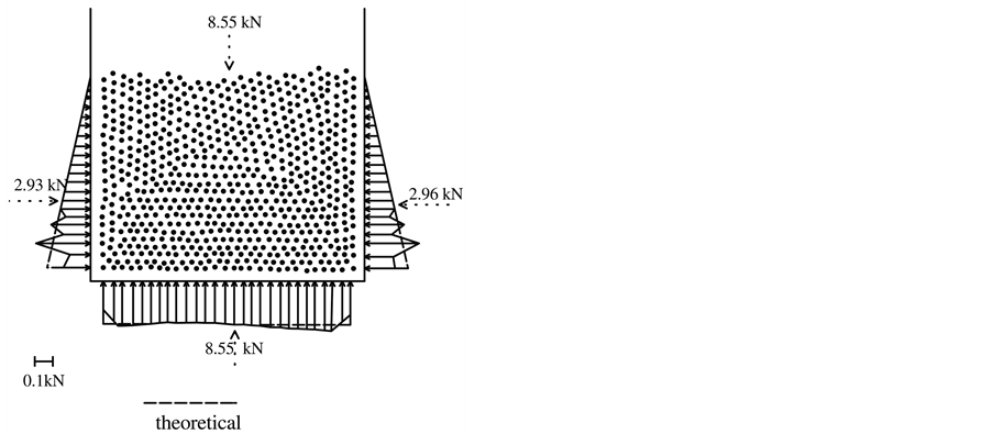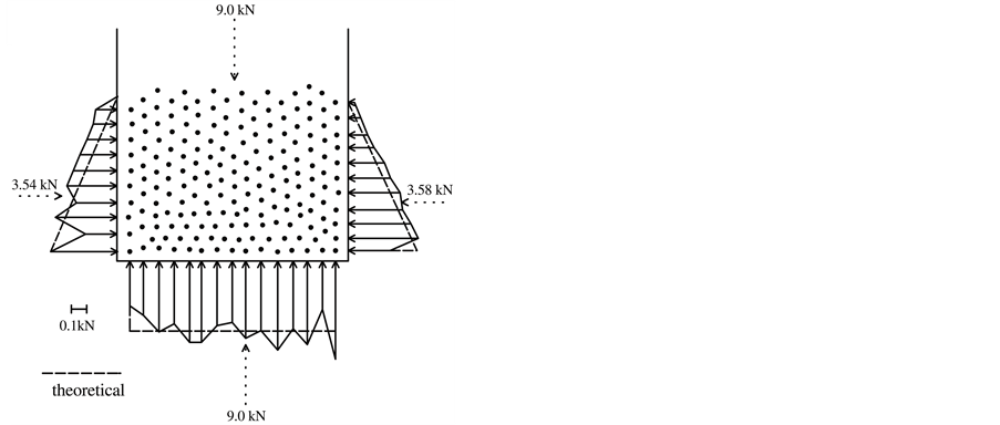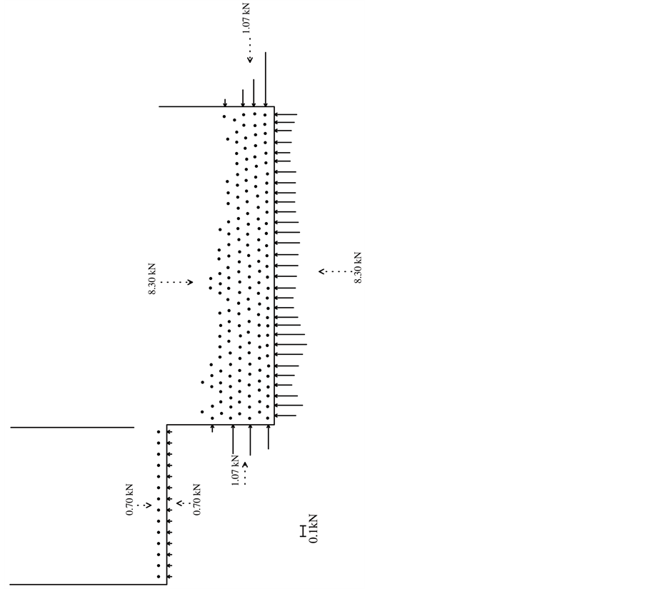 the external repulsive reactions at boundaries, obtained by coarse discretization, are compared to corresponding forces, obtained from theoretical hydro-static pressure distribution, shown in Figure 6(b). The approximation between computational and theoretical results can be considered as satisfactory. This is mainly due to the proposed incompressible rhombic element, described in previous Section 5.