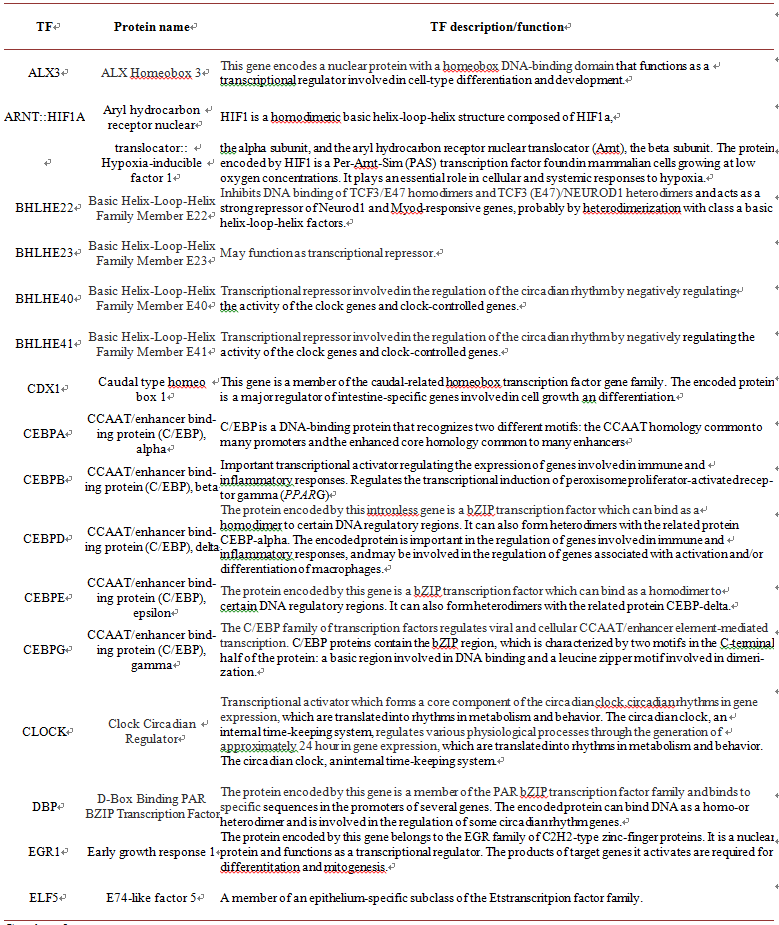 The JASPAR CORE database [22] [23] and Con Site [24] were used to identify the TFBS in previous studies [25] - [36] . JASPAR is a collection of transcription factor DNA-binding preferences used for scanning genomic sequences where ConSite is a web-based tool for finding cis-regulatory elements in genomic sequences. The Vector NTI Advance 11 computer program (Invitrogen, Life Tech- nologies) was used to locate SNPs and TFBS within all genes listed in Table 2.
