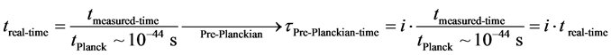 Our supposition is that Equation (2) to Equation (5) in the matter of pre-Planckian space time, say in a boundary of 2 times Planck time to buttress the repeating cyclical universe we are assuming as possibility given by Penrose [17] , is changed then to take into the quantum bounce analogy we think should be looked at [11] as given by C. Rovelli and F. Vidotto. So then we get from Planckian space time, a real time evaluation which shrinks to imaginary time, via the following rule
