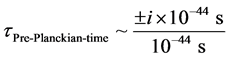 This means that in an interval just before the Planck time, that we are postulating a pre-Planckian space-time which is purely imaginary, i.e. operationally Equation (2) is, effectively in the regime of analysis of Kinetic energy dominance given by