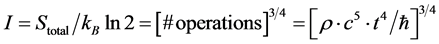 Such a linkage would open up the possibility that the density of primordial gravitational waves could be examined, and linked to modeling gravity as an effective theory. The details of linking what is done with Equation (8) and bridging it to Equation (9) await additional theoretical development, and are probably conceptually understandable if the following is used to link the two regimes. i.e. we can use the number of space time operations used to create Equation (8) via Seth Lloyds [15]
