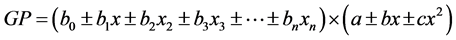 are variables classified as significant by the Step Wise model. The equation in matrix form is described as: