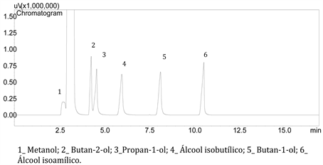 Methanol and acetaldehyde are compounds that are characteristic of the head fraction because they are substances that are very volatile [4] [5] . For Serafim et al. [6] , aldehydes are compounds responsible for the definition and consequent separation of the group of compounds referred to as the head fraction because this compound is very volatile.