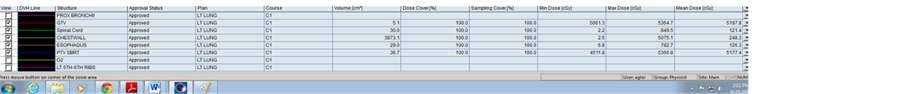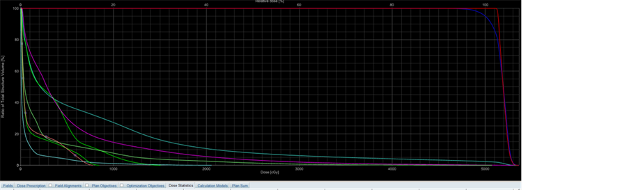 Figure 2. Dose volume histogram of lung SBRT treated at 50 Gy in 5 fractions.