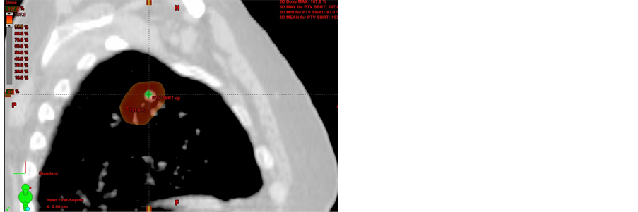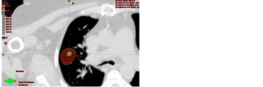 Figure 3. A 70-year-old woman with lung cancer was treated with SBRT for a total dose of 50 Gy given in 5 fractions.