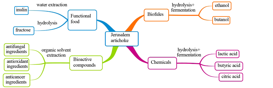 Figure 1. These diverse applications along with low-cost of plantation render Jerusalem artichoke a promising biomass for the development of a bioeconomy [20] .