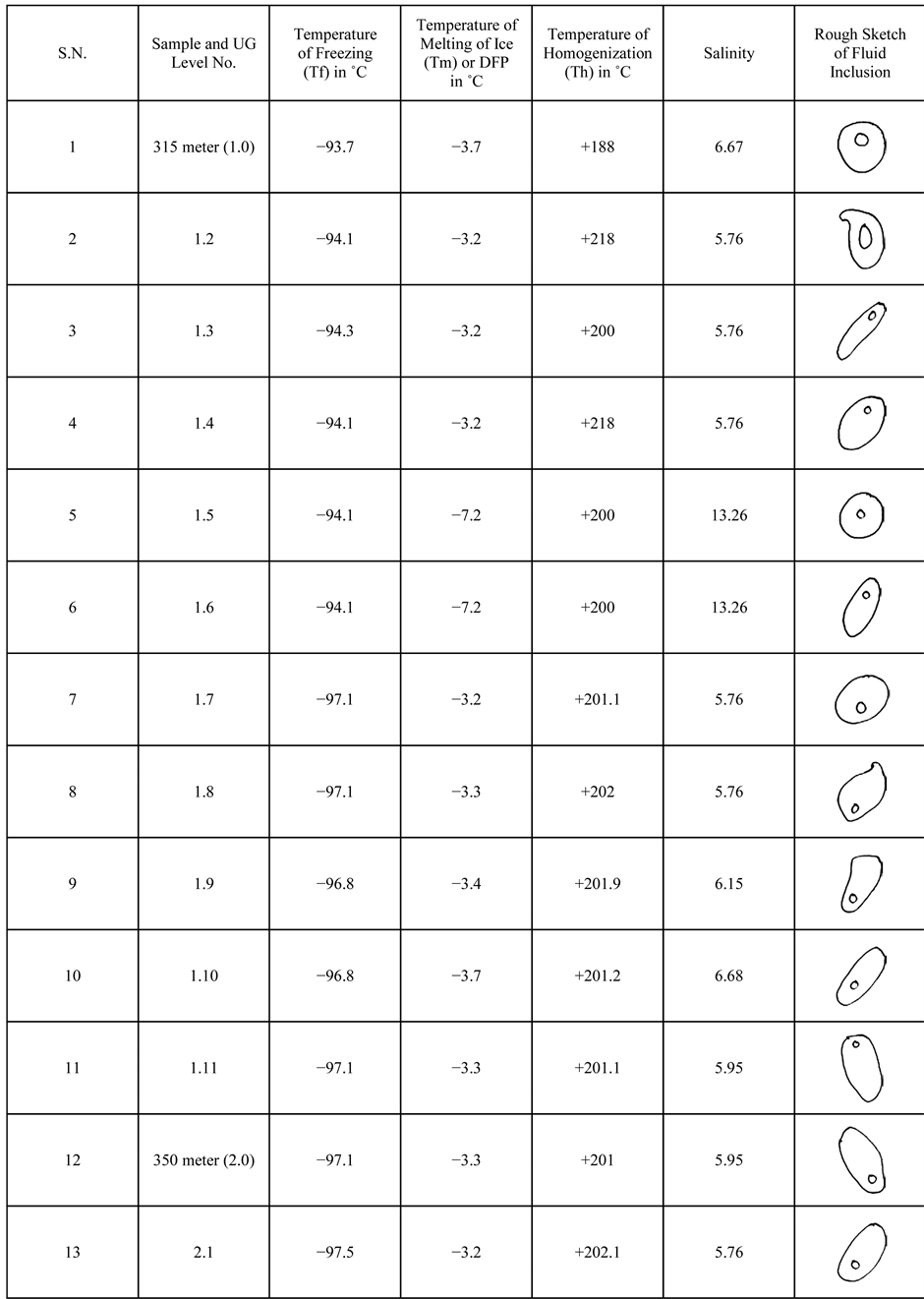Table 1. Showing different properties of fluid inclusions.
