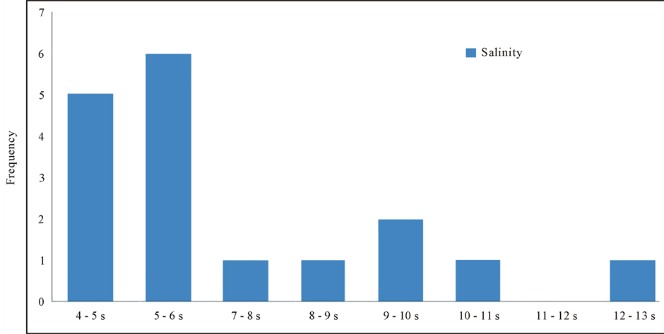 Figure 7. Histograms salinity of primary biphase inclusions.