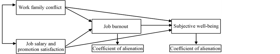 Based on the analysis and hypothesis above, we constructed path analysis model on effect of work-family conflict, job salary and promotion satisfaction and job burnout on subjective well-being (Figure 1).
