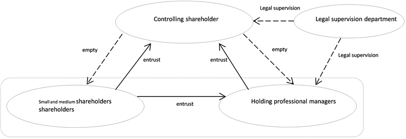 However, in the practice of mixed ownership reform of state-owned enterprises, there are many problems that need to be solved. Understanding of mixed ownership in practice is relatively narrow, it simply understood the mixed ownership as the adjustment of ownership structure, and rarely involved in corporate governance mechanism matching reform. Especially, it rarely involves how to improve the efficiency of mixed ownership enterprises, how to protect the rights of medium and small investors, how to standardize enterprise for solving the problems of the governance mechanism design, this is the important reason for not too successful of state-owned enterprises reform China for many years [3] . The western theoretical circle has constructed the corporate governance theory for the shareholding separation enterprises by using the traditional principal-agent theory, which mainly solves the conflict of interests between the shareholders and the business operators, that is, the first type of agency problem [4] [5] . However, the majority of corporate equity in China is not decentralized but highly concentrated. The controlling shareholders have the motivation and power to seek private interests through influencing various decisions of the company, and to tunnel the corporate value or expropriate the interests of medium and small shareholders [6] [7] . In particular, in order to maintain control power, the state-owned capital often choose to hold absolute control over the enterprise, which leads to the widespread phenomenon that the controlling shareholders abuse control and occupy other shareholders’ interests [8] . Therefore, businesses in practice generally exists dual principal-agent problem, which is all the shareholders to operator managers and small & medium-sized shareholders to controlling shareholders [9] , the interests conflicts between the small- & medium-sized shareholders to controlling shareholder is growing, this is the second agency problem. The tunneling behavior of controlling shareholders to the interests of minority shareholders has a direct impact on the initiative of private capital to enter into state-owned enterprises, which is resulted in the dilemma of state-owned enterprise mixed ownership reform.