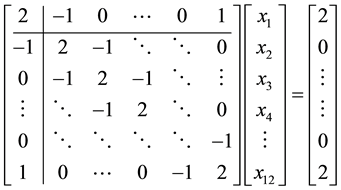Example 4.1. Solve the following periodic tridiagonal linear system of size 12.